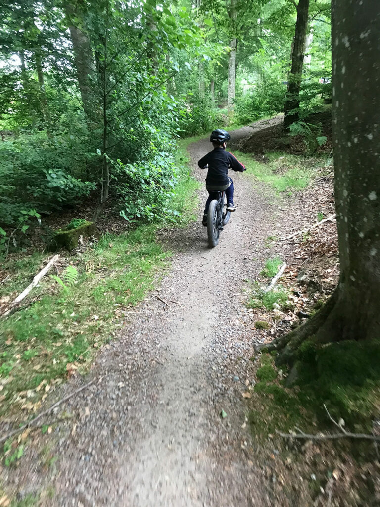Kungsbygget har också gjort cykelleder på berget och man kan låna cyklar som ingår i aktivitetspasset eller ta med egen cykel. Det finns flowtrail, både grön, blå, röd och svart. Det finns också dual där man kan cykla bredvid varandra. Vi provade den gröna och blå flowtrailen med barnen och den var rolig. Inte svår stigning och inga hinder, men kurvor att träna på.