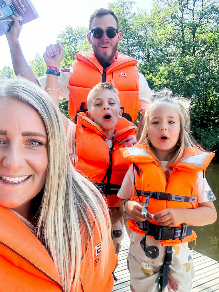 När barnen åkt flera varv i safaribanan än någon av oss kunde räkna till var det dags för nästa äventyr. Vi kliver in i den lilla boden precis vid ån, väl där inne börjar genast barnen att rycka tag i flytvästarna för att leta rätt på en passande storlek, behöver jag nämna att de var taggade till tårna. Nu var det äntligen dags för det stora trampbåtsäventyret. Solen stekte och vattnet kändes nästan ljummet, ljudet från fåglarna och det spegelblanka vattnet fick oss att ibland sluta trampa, enbart för att kunna lyssna på de olika ljuden vi hörde, var det en fisk? Eller kanske en groda?……