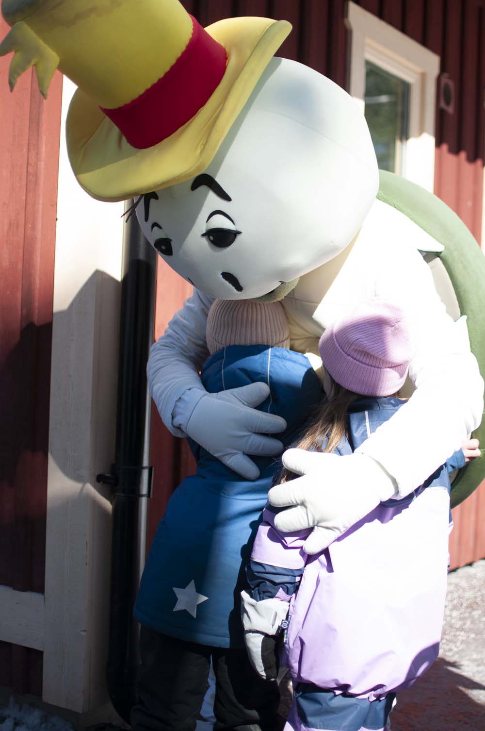 Det är en riktigt kall morgon första dagen i April när vi kliver in på Kolmården, det är inte för mycket folk utan vi tar oss med lätthet in. Direkt innanför entren så har de pyntat med både harar och stora ägg. Det finns även en mycket populär tavla att fota framför.